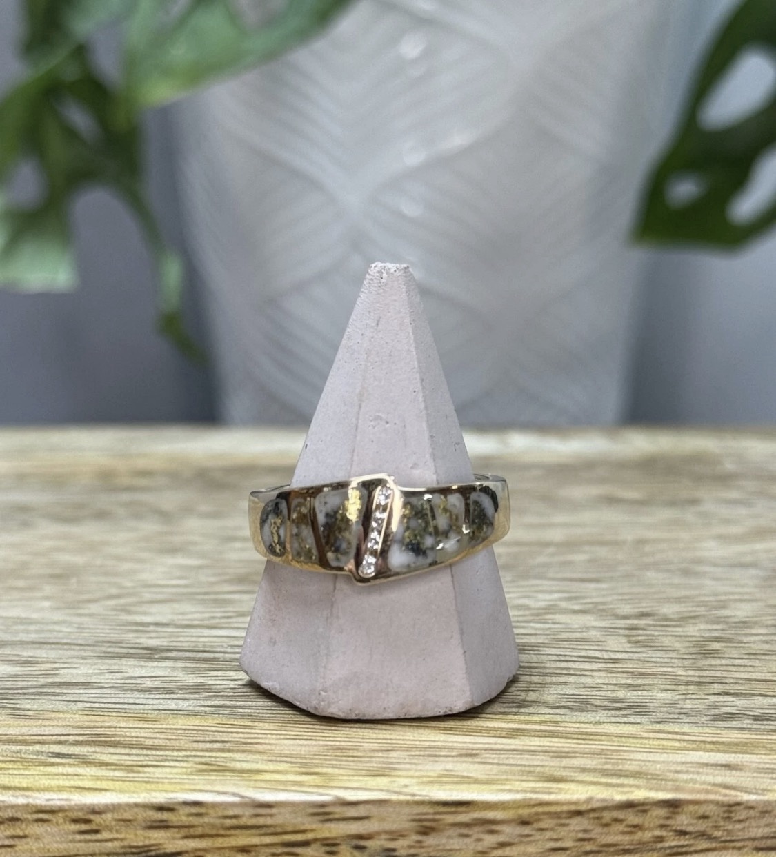 Gold in Quartz and Natural Nuggets with Diamonds in 14KT White Gold Ring – Lady